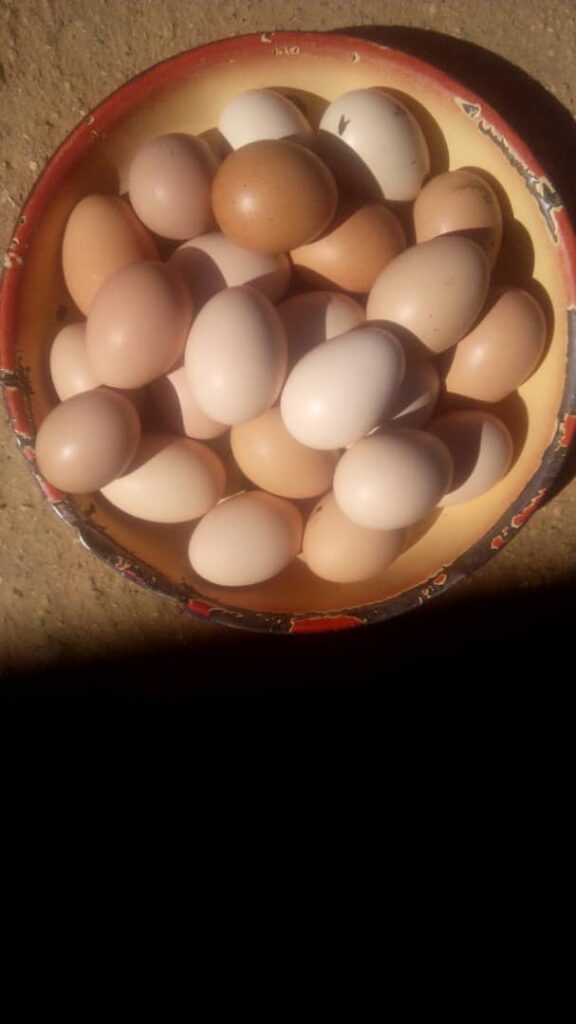 Vandaag kregen we een paar foto’s waaruit blijkt dat de kippen uit het laatste project, na de tegenslag door een kippenziekte, nu voortreffelijk hun best doen. Ze lopen gezond te scharrelen en produceren zodanig veel eieren dat ook deze inmiddels op de lokale markt te koop zijn.